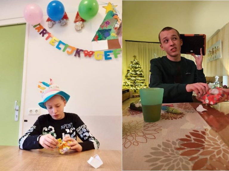 Cadeautjes zeggen hem ook niets, “OK, als jij dat wilt, dan scheur ik dat papier wel, zo irritant allemaal, laat me toch”. Tot een jaar of 14 vond hij één ding wel leuk en dat is de feestmuts die hij op mag zetten. Daarna hoefde dat ook niet meer.