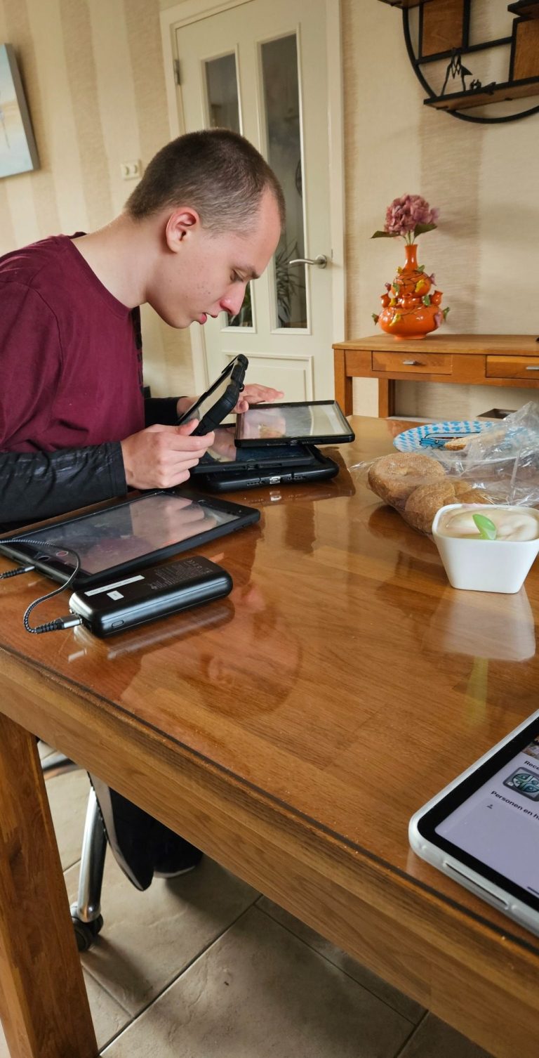 Zondag om 8.30 springen papa en mama in de auto, op naar Oudemirdum, mij ophalen op Kleurrijk, ze komen om 9.00 uur aan. Ik heb altijd direct in de gaten dat ze er zijn, ik maak mijn kamerdeur open, pak papa bij de hand, trek hem mee naar het kantoortje om daar nog twee extra Ipads te scoren. (zo stom ik mag er maar 1 tegelijk op Kleurrijk, ik wil ze allemaal. Maar 1 is ook wel best, want ze zijn lief voor mij) Even op mijn bank een half uurtje filmen van de ene naar de andere Ipad. Papa en mama zeggen dan iedereen even gedag en maken een praatje met de begeleiding. Het is 9.45 ik ben klaar voor de eerste route, de route “naar huis”, deze is bijna altijd het zelfde het enige dat anders is, wanneer besluit ik wanneer we linksaf slaan naar het IJsselmeer. Wanneer we thuiskomen vermaak ik mij altijd prima in mijn mancave. Om 12.30 is het tijd voor “Rondje 1” deze duurt meestal 1,5 uur, eerst een klein rondje over Heeg, Oudega , Nijland en dan heel vaak heen en weer tussen Sneek en Nijland. “Hoezo maar 6x heen en weer papa? Wat ben je stom papa!” Ik ga je porren, aan je trui trekken, weer verloren. Dan maar met commentaar vanaf de achterbank, word ik naar huis gereden, naar de lekkere broodjes die mama vers heeft gehaald voor mij.